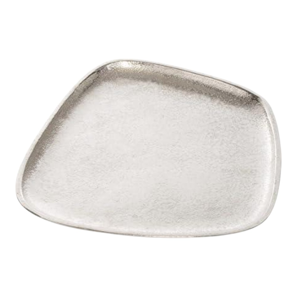 Embrace a modern, organic aesthetic with this beautiful platter. Its free-form, asymmetrical shape is reminiscent of a smooth river stone, while the brushed, antique silver finish provides a tactile, sophisticated feel. It’s a perfect minimalist piece for a coffee table, console, or for serving appetizers.