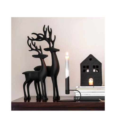 This elegant set includes two modern reindeer figurines in a sophisticated matte black finish. Featuring one large stag and one smaller deer, their sleek, minimalist design and smooth curves make them a perfect accent for contemporary holiday or year-round decor.