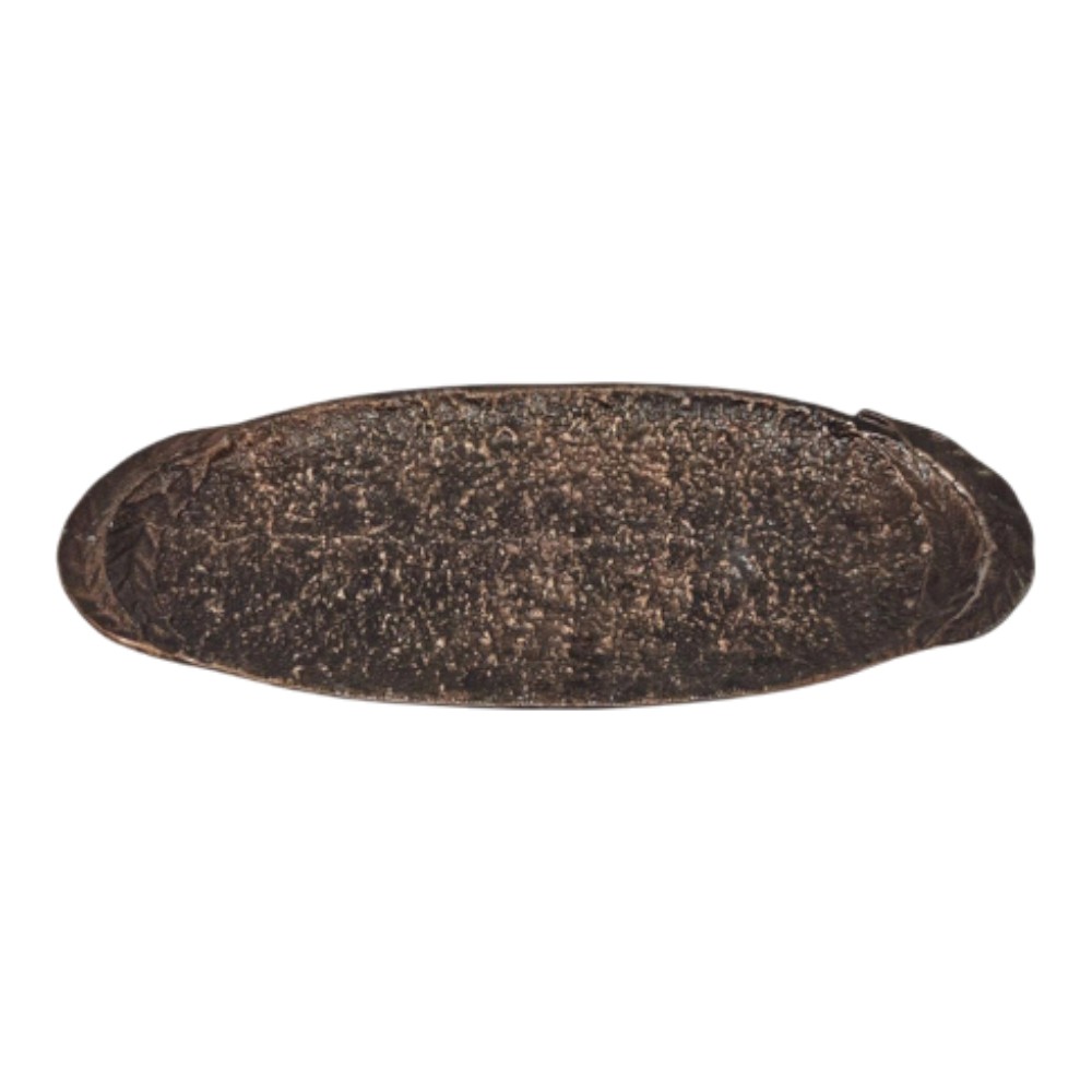 Add a touch of rustic charm to your space with this distinctive dark brown oval tray. Featuring a heavily textured, distressed finish, this elongated piece boasts a rich, almost bronze-like patina that offers a striking old-world aesthetic. Perfect for use as a unique serving platter for charcuterie, a centerpiece base, or a functional decorative catch-all on a console table, its narrow shape and bold texture make it a versatile and memorable accent for any room.