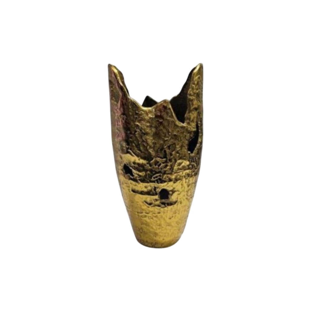A highly abstract, contemporary vase featuring a thick, ring or doughnut shape with a prominent square cutout at the center. It has a deeply carved, wavy texture in black.